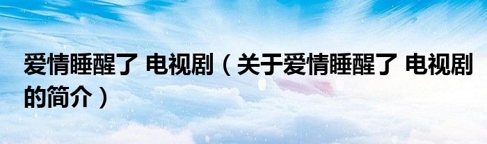 本文關(guān)于愛情睡醒了 電視劇的簡介就講解完畢,希望對大家有所幫助。