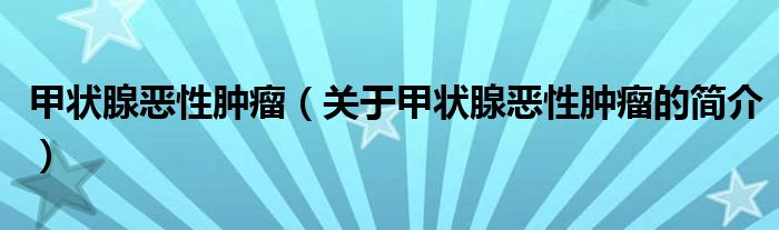 本文關于甲狀腺惡性腫瘤的簡介就講解完畢,希望對大家有所幫助。