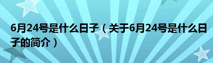 大家好,6月24號是什么日子,關于6月24號是什么日子的簡介很多人還不知道,現在讓我們一起來看看吧!