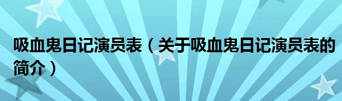 大家好,吸血鬼日記演員表,關(guān)于吸血鬼日記演員表的簡介很多人還不知道,現(xiàn)在讓我們一起來看看吧!