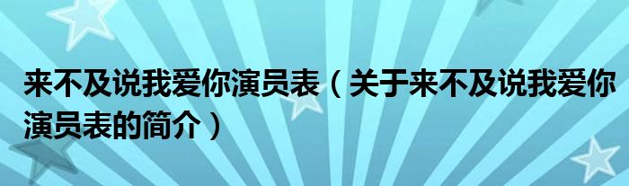 本文關(guān)于來(lái)不及說(shuō)我愛(ài)你演員表的簡(jiǎn)介就講解完畢,希望對(duì)大家有所幫助。