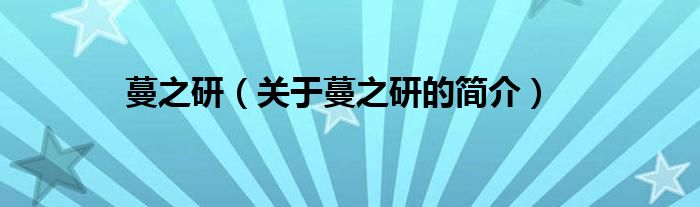 大家好,蔓之研,關(guān)于蔓之研的簡介很多人還不知道,現(xiàn)在讓我們一起來看看吧!