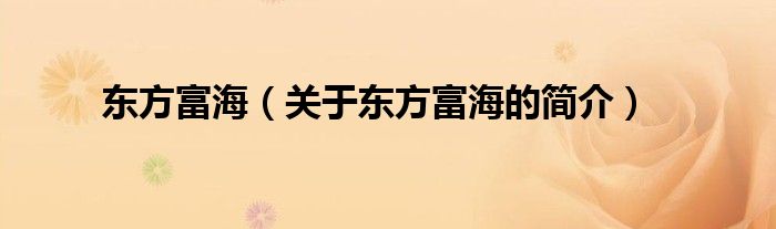 大家好,東方富海,關于東方富海的簡介很多人還不知道,現在讓我們一起來看看吧!