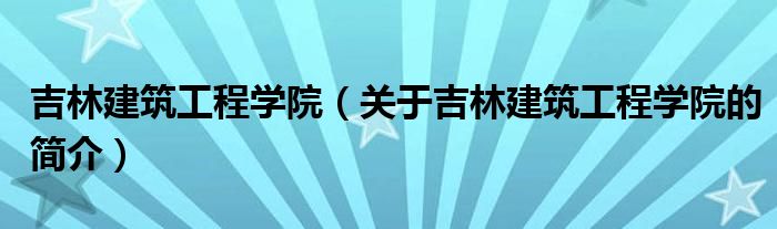 本文關于吉林建筑工程學院的簡介就講解完畢,希望對大家有所幫助。