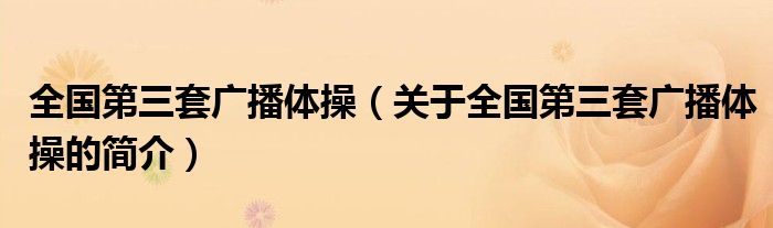 本文關于全國第三套廣播體操的簡介就講解完畢,希望對大家有所幫助。