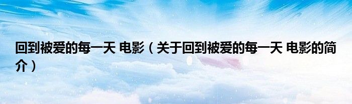 本文關(guān)于回到被愛的每一天 電影的簡(jiǎn)介就講解完畢,希望對(duì)大家有所幫助。