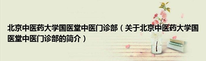 本文關于北京中醫藥大學國醫堂中醫門診部的簡介就講解完畢,希望對大家有所幫助。