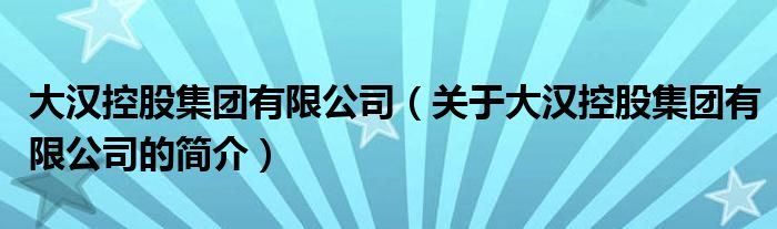 本文關于大漢控股集團有限公司的簡介就講解完畢,希望對大家有所幫助。