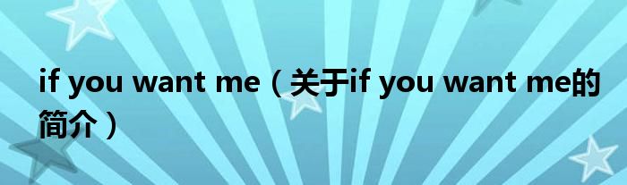 大家好,if you want me,關于if you want me的簡介很多人還不知道,現在讓我們一起來看看吧!