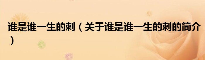 本文關(guān)于誰(shuí)是誰(shuí)一生的刺的簡(jiǎn)介就講解完畢,希望對(duì)大家有所幫助。