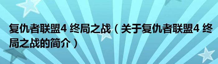 大家好,復仇者聯盟4 終局之戰,關于復仇者聯盟4 終局之戰的簡介很多人還不知道,現在讓我們一起來看看吧!