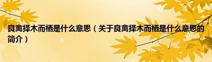 本文關(guān)于良禽擇木而棲是什么意思的簡(jiǎn)介就講解完畢,希望對(duì)大家有所幫助。