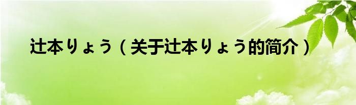 本文關于辻本りょう的簡介就講解完畢,希望對大家有所幫助。