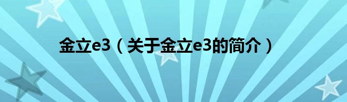 大家好,金立e3,關(guān)于金立e3的簡介很多人還不知道,現(xiàn)在讓我們一起來看看吧!
