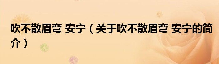 本文關于吹不散眉彎 安寧的簡介就講解完畢,希望對大家有所幫助。