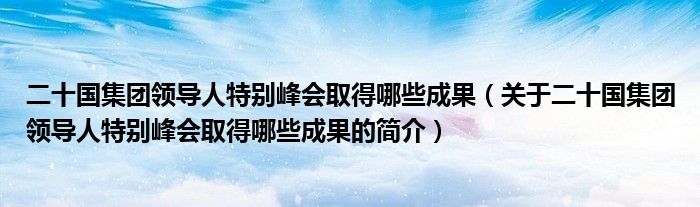 本文關(guān)于二十國集團(tuán)領(lǐng)導(dǎo)人特別峰會取得哪些成果的簡介就講解完畢,希望對大家有所幫助。