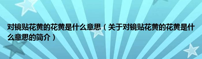 本文關(guān)于對鏡貼花黃的花黃是什么意思的簡介就講解完畢,希望對大家有所幫助。