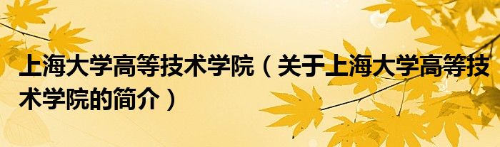 本文關(guān)于上海大學(xué)高等技術(shù)學(xué)院的簡介就講解完畢,希望對大家有所幫助。