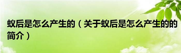 本文關于蟻后是怎么產生的的簡介就講解完畢,希望對大家有所幫助。