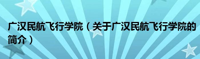 本文關于廣漢民航飛行學院的簡介就講解完畢,希望對大家有所幫助。