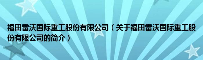 本文關于福田雷沃國際重工股份有限公司的簡介就講解完畢,希望對大家有所幫助。