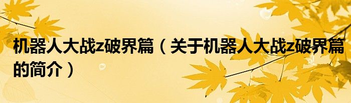本文關于機器人大戰z破界篇的簡介就講解完畢,希望對大家有所幫助。