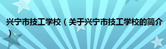 本文關于興寧市技工學校的簡介就講解完畢,希望對大家有所幫助。