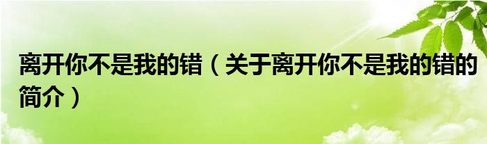 本文關于離開你不是我的錯的簡介就講解完畢,希望對大家有所幫助。