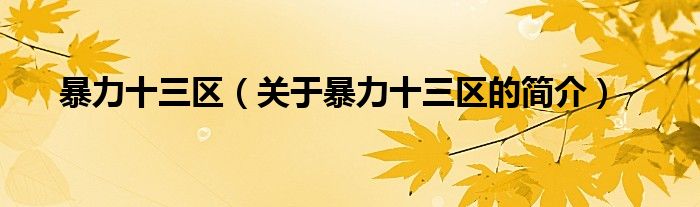 本文關于暴力十三區的簡介就講解完畢,希望對大家有所幫助。