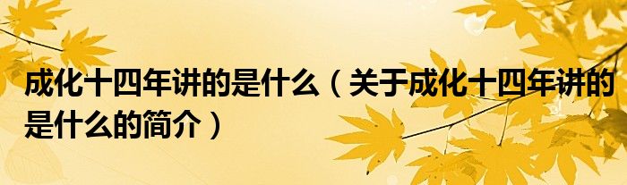 本文關于成化十四年講的是什么的簡介就講解完畢,希望對大家有所幫助。