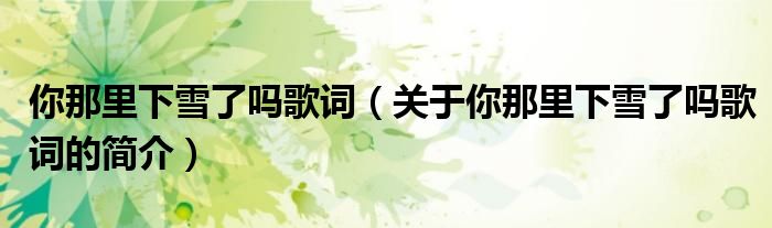 大家好,你那里下雪了嗎歌詞,關于你那里下雪了嗎歌詞的簡介很多人還不知道,現在讓我們一起來看看吧!