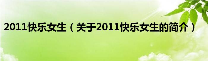 本文關于2011快樂女生的簡介就講解完畢,希望對大家有所幫助。