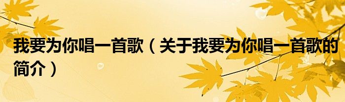本文關于我要為你唱一首歌的簡介就講解完畢,希望對大家有所幫助。