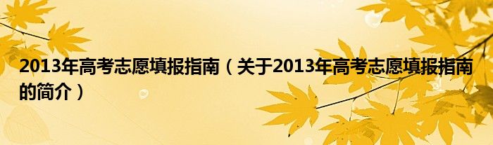 本文關于2013年高考志愿填報指南的簡介就講解完畢,希望對大家有所幫助。