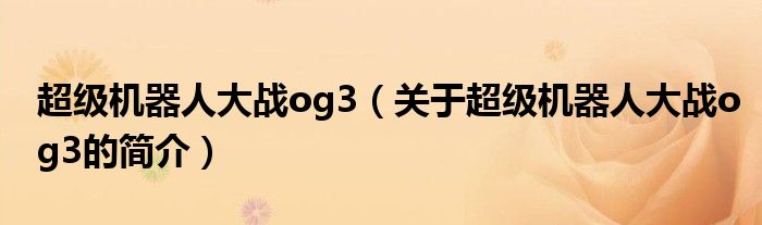 本文關于超級機器人大戰og3的簡介就講解完畢,希望對大家有所幫助。