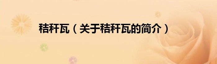 大家好,秸稈瓦,關于秸稈瓦的簡介很多人還不知道,現在讓我們一起來看看吧!