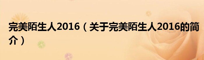 本文關(guān)于完美陌生人2016的簡介就講解完畢,希望對大家有所幫助。