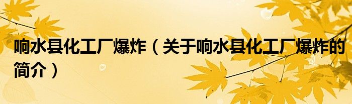 本文關于響水縣化工廠爆炸的簡介就講解完畢,希望對大家有所幫助。