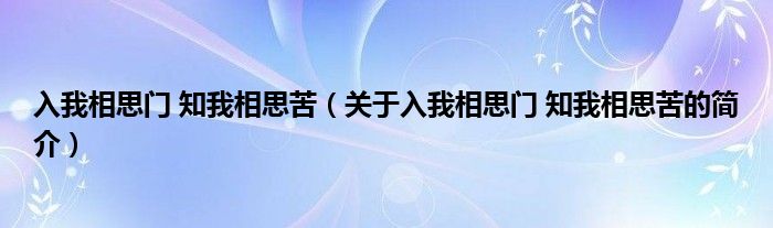 本文關于入我相思門 知我相思苦的簡介就講解完畢,希望對大家有所幫助。