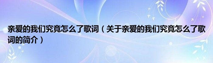 本文關(guān)于親愛的我們究竟怎么了歌詞的簡介就講解完畢,希望對大家有所幫助。