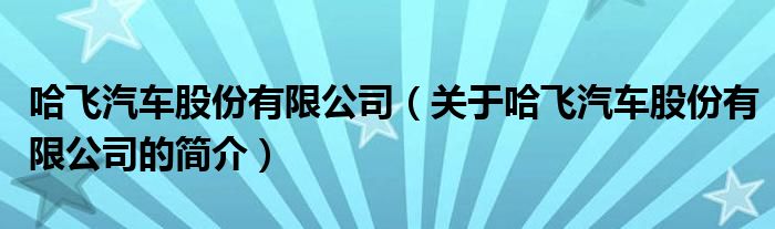 本文關(guān)于哈飛汽車股份有限公司的簡(jiǎn)介就講解完畢,希望對(duì)大家有所幫助。