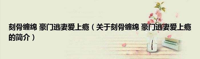 本文關于刻骨纏綿 豪門逃妻愛上癮的簡介就講解完畢,希望對大家有所幫助。