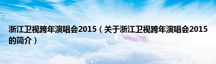 本文關于浙江衛視跨年演唱會2015的簡介就講解完畢,希望對大家有所幫助。