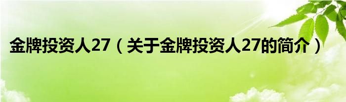 本文關于金牌投資人27的簡介就講解完畢,希望對大家有所幫助。