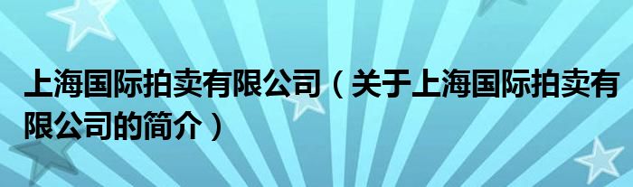 本文關于上海國際拍賣有限公司的簡介就講解完畢,希望對大家有所幫助。
