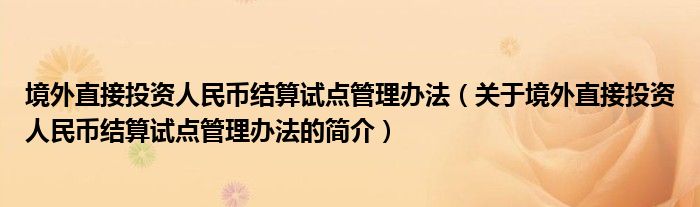 本文關于境外直接投資人民幣結算試點管理辦法的簡介就講解完畢,希望對大家有所幫助。