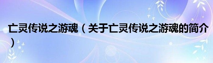 本文關于亡靈傳說之游魂的簡介就講解完畢,希望對大家有所幫助。