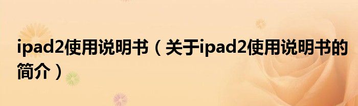 本文關于ipad2使用說明書的簡介就講解完畢,希望對大家有所幫助。
