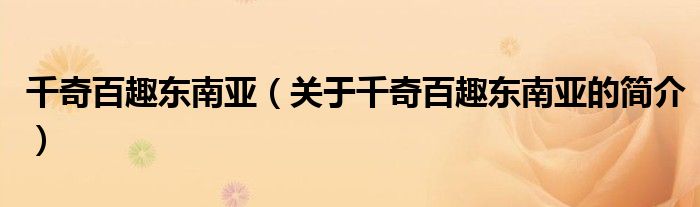 本文關于千奇百趣東南亞的簡介就講解完畢,希望對大家有所幫助。