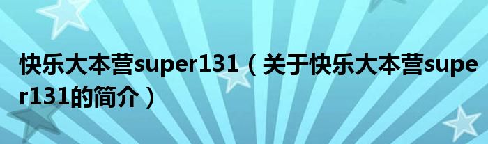 本文關(guān)于快樂大本營super131的簡介就講解完畢,希望對大家有所幫助。
